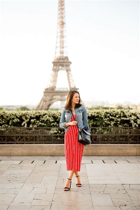 Bring the vibrant beauty of spring to life with floral-patterned outfits. Choose dresses adorned with delicate rose prints, daisies, or blooming magnolias. These feminine designs will create a charming contrast to the grandeur of the Eiffel Tower. Accessorize with strappy sandals and a straw hat for a delightful picnic under the Parisian sun.