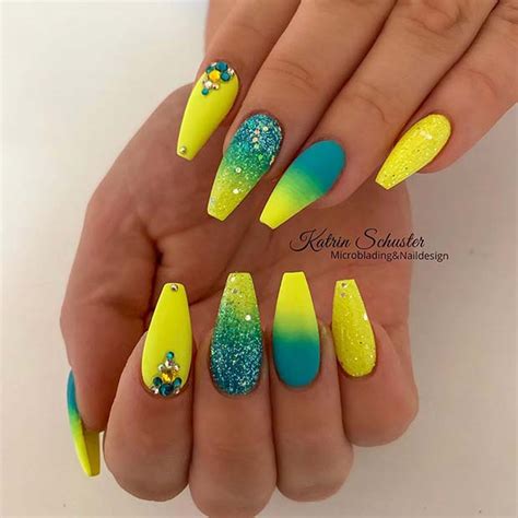 - Ombre: Create a gradient effect by applying different shades of fluo nails summer blue to your nails.