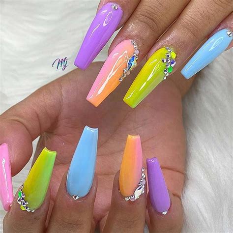 Hey there, readers! Summer is here, and it’s time to embrace vibrant colors that match the season’s cheerful vibes. If you’re looking for a nail art style that’s both stunning and trendy, look no further than multi-colored nails in the ever-so-popular coffin shape. Get ready to turn heads with your eye-catching fingertips!