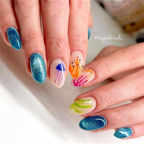 Summer is the season to embrace the beauty of the ocean, and what better way than with mermaid-inspired nails? Dive into a world of shimmering scales, iridescent colors, and enchanting designs. Channel your inner mermaid with opalescent blues, greens, and purples, creating an enchanting underwater wonderland on your nails. Add some holographic glitter or iridescent foil to capture the mesmerizing glow of the deep sea. Get ready to make a splash with mermaid nails that evoke the magic of the ocean.