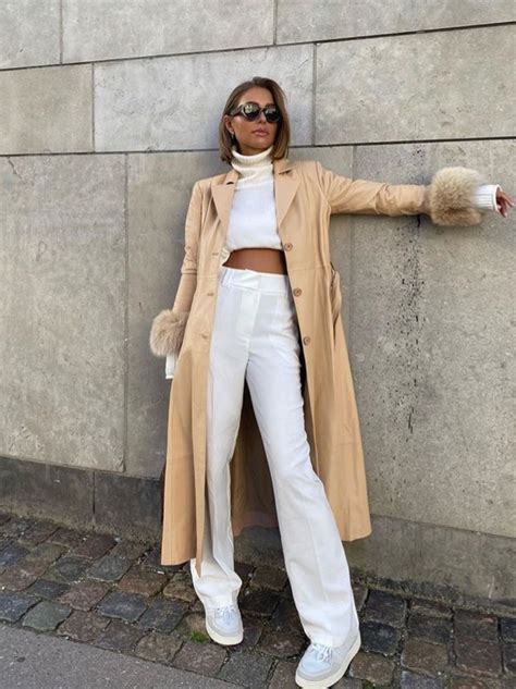 Trench coats are a perennial favorite for their functionality and timeless appeal. In a classic beige hue, they exude a sophisticated and effortless elegance. Pair a beige trench coat with a crisp white button-down shirt, tailored trousers, and a pair of sleek pumps for a polished office look.