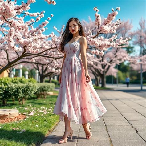 Embrace the ethereal nature of cherry blossoms with light and airy dresses in pastel hues such as pale pink, lavender, or blue. These dresses will dance in the breeze, creating a romantic and dreamy ensemble. Opt for fabrics like chiffon, lace, or cotton to enhance the floaty effect.