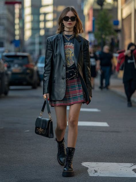 Leather jackets, graphic tees, distressed jeans, and chunky boots.