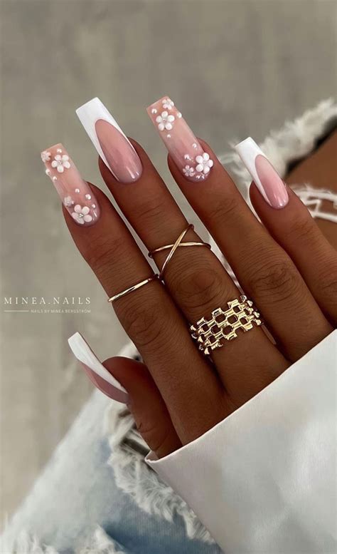 The classic French manicure gets a summery update with white tips. Instead of the traditional pink base, try a sheer nude or light blue base coat. You can also add a touch of sparkle to your tips with a white glitter polish.